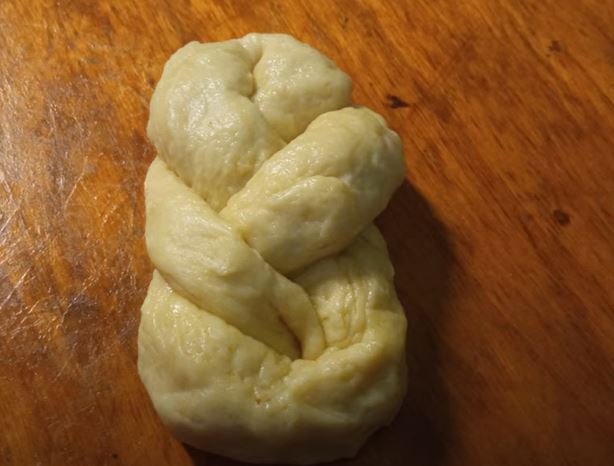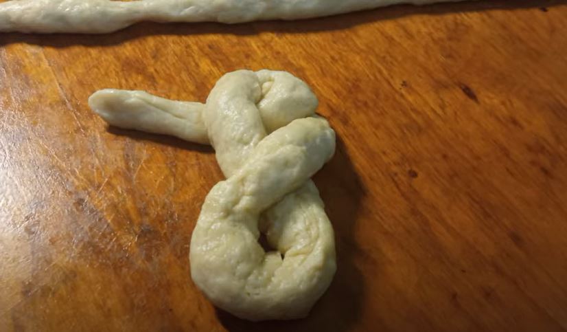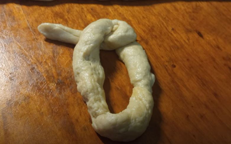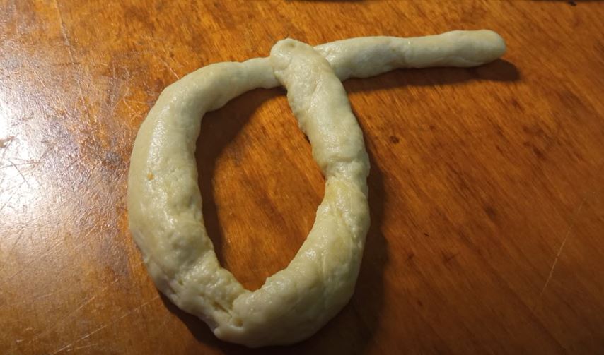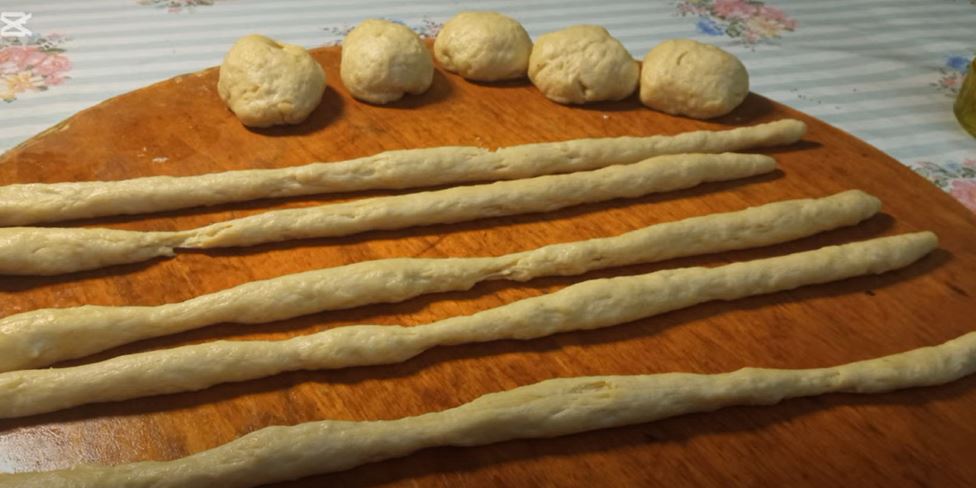 Χωρίζω τη ζύμη σε μικρά μπαλάκια και τα πλάθω σε φυτίλια μήκους περίπου 50 εκατοστών.