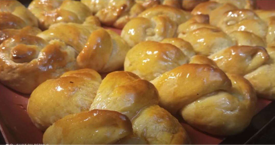 Τοποθετώ τα τσουρεκάκια σε ένα ταψί στρωμένο με λαδόκολλα.