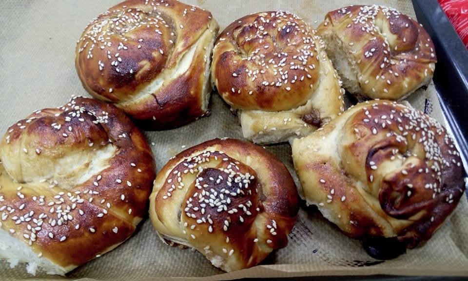 * Μερικές φορές η ζύμη λιπαίνεται με την γέμιση δύο φορές – αλείφεται ένα στρώμα ζύμης, τυλίγεται, ξεδιπλώνεται και λιπαίνεται ξανά