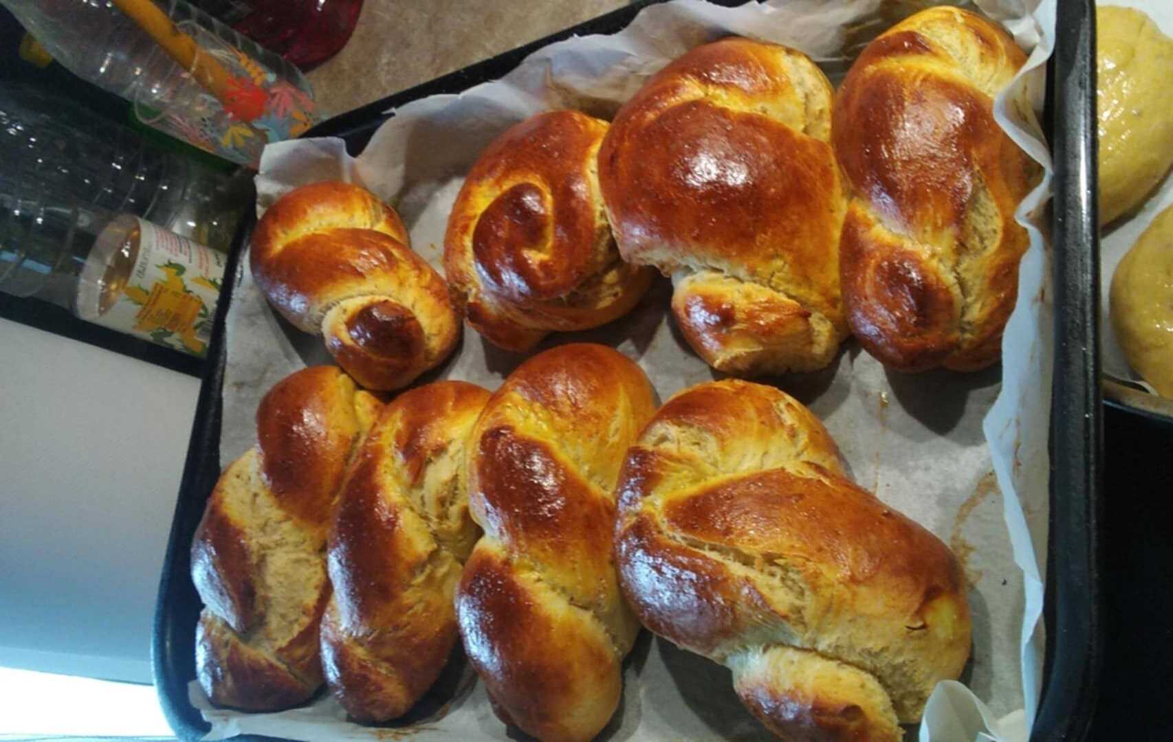 - Χωρίστε τη ζύμη σε μικρά κομμάτια και πλάστε τα σε όμορφα τσουρεκάκια στο σχήμα που επιθυμείτε (όπως φαίνονται στη φωτογραφία, σε σχήμα σαλιγκαριού ή πλεξούδας).