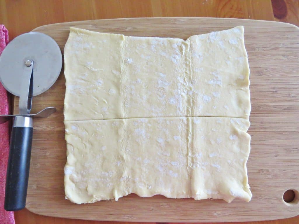 Κάντε μια οριζόντια περικοπή σε όλη τη ζύμη (χρησιμοποιώντας έναν κόπτη πίτσας ή ένα κοφτερό μαχαίρι)