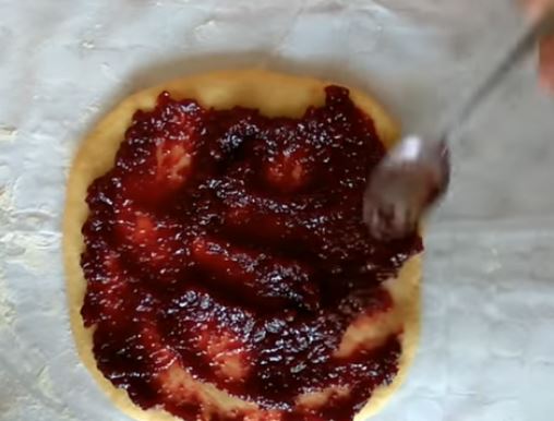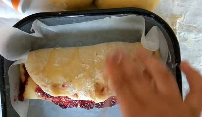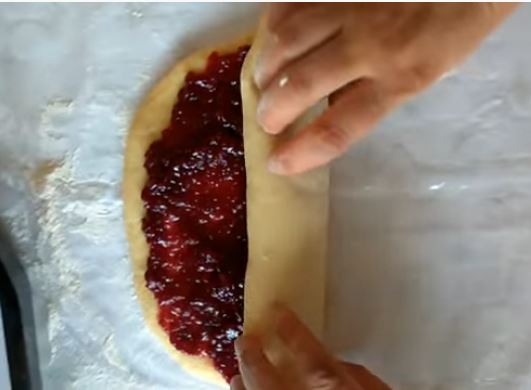 Καλύψτε με μαρμελάδα και διπλώστε το σε ρολό.