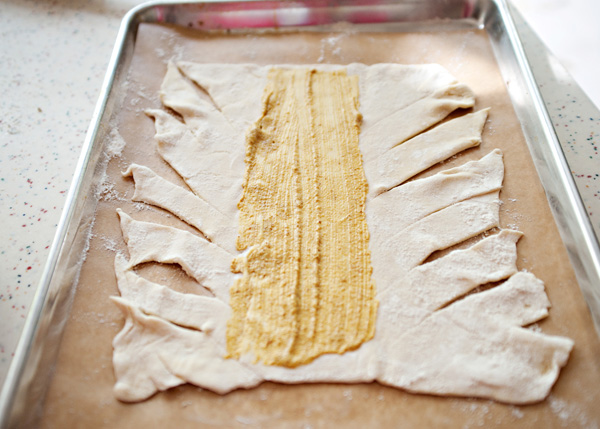 Επικαλύψτε τις λωρίδες της ζύμης.
