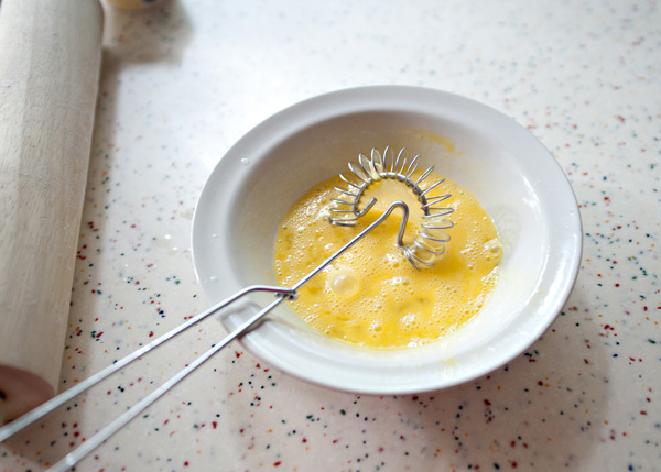 Ανακατέψτε μαζί το αυγό και μερικά κουταλάκια του γλυκού νερό.