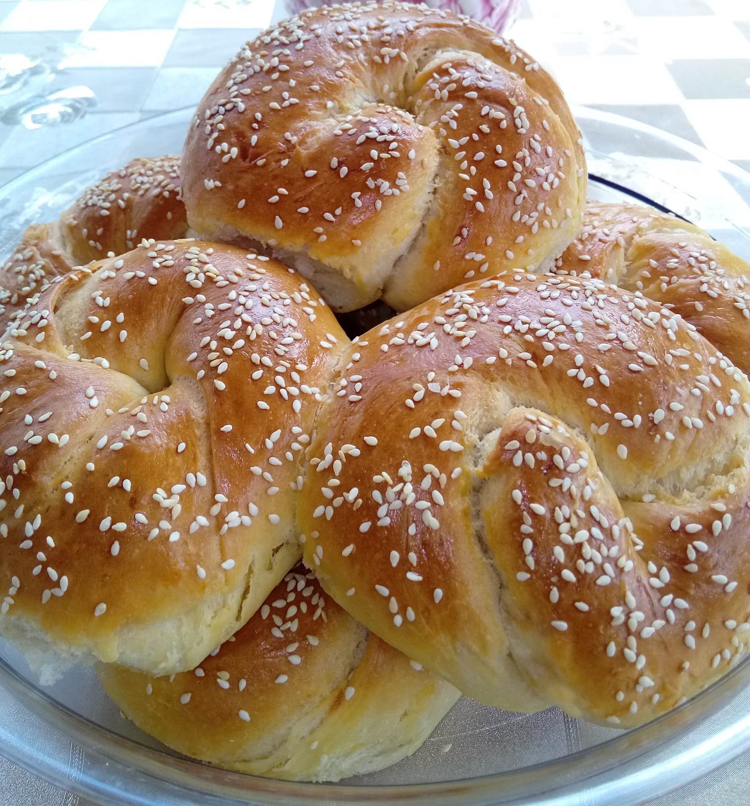 Αφηνω να ξαναφουσκωσουν μετα τα αλειφω με το διαλυμα κροκου γαλα βαζω λιγο σουσαμι