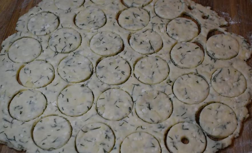 Βγάζω την ζύμη σε αλευρωμένο παγκο και την ανοιγω με πλαστη και με ένα κουπ πατ και κοβω περιπου 30 μπουκιτσες και ενα χοντρο καλαμακι κανω τρυπες στην μεση.
