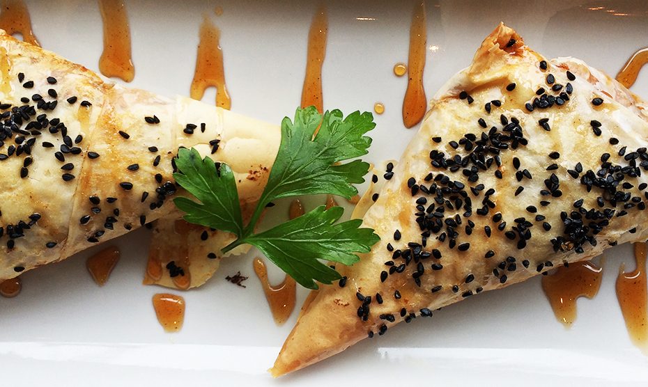 Για να το σερβίρετε: Τοποθετήστε 1 ή 2 τρίγωνα σε ένα πιάτο και πασπαλίστε με τη σάλτσα μελιού. Γαρνίρετε, αν θέλετε, με λίγο φρέσκο μαϊντανό.