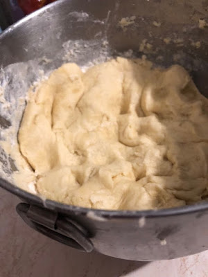 Αφού γίνει μια εύπλαστη ζύμη σκεπάζουμε το μπολ με ένα πιάτο και την αφήνουμε για μισή ώρα .