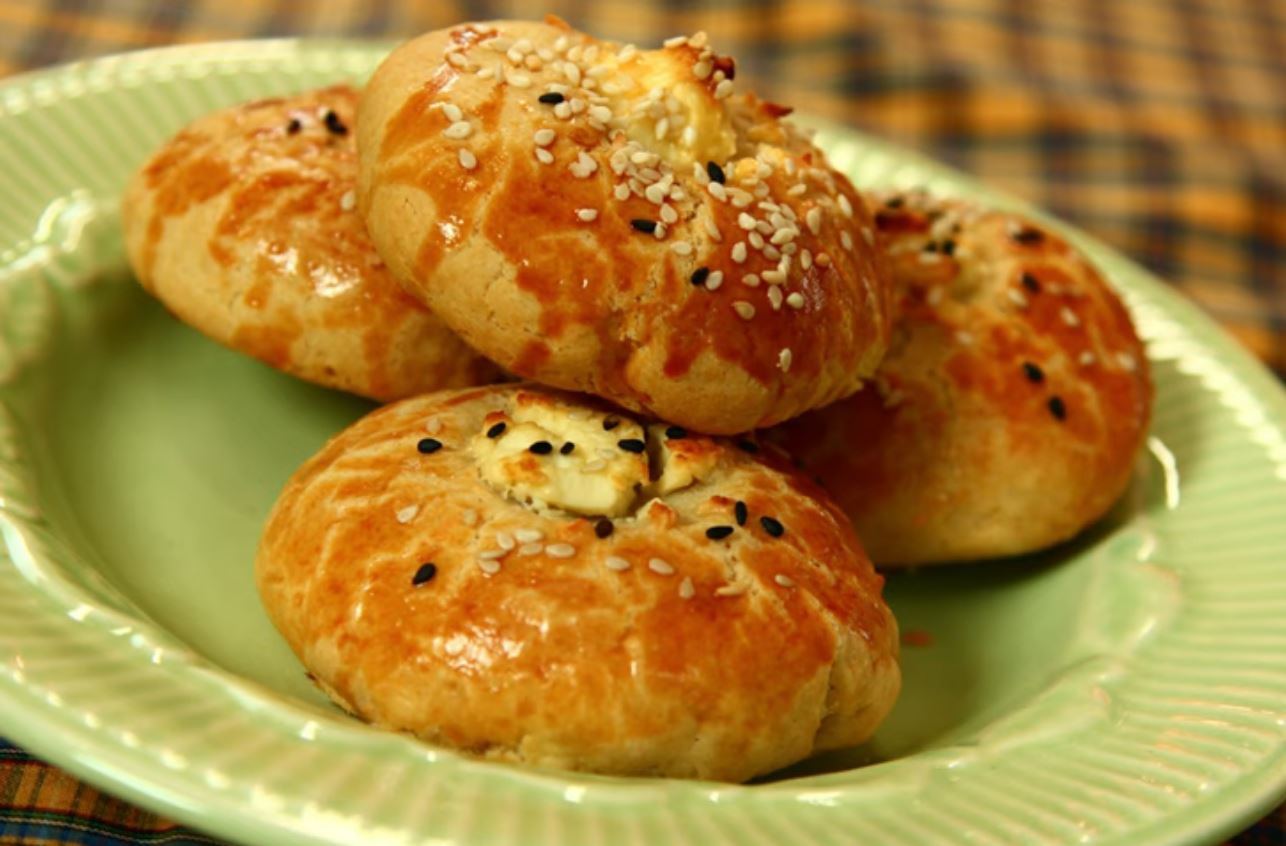Επάνω αλείφουμε με κρόκο αυγού, πασπαλίζουμε με σουσάμι.
