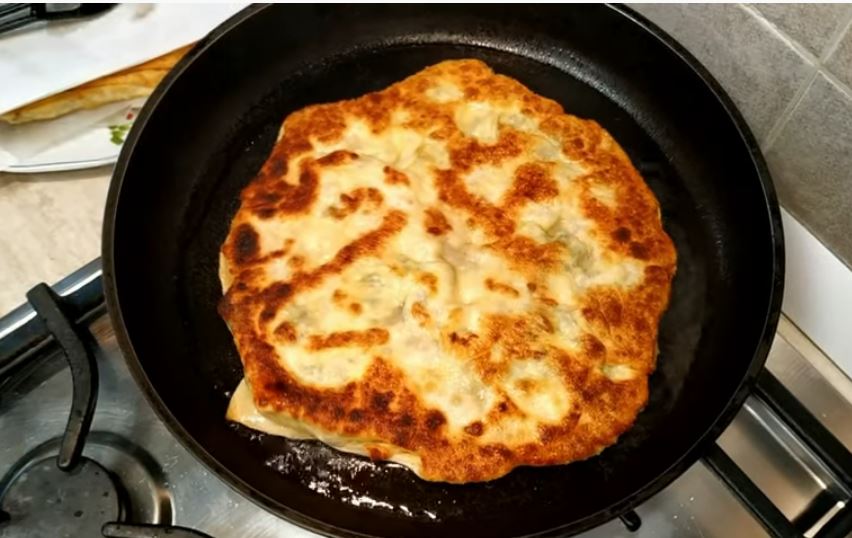 Συνεχίζουμε με τον ίδιο τρόπο έως ότους τηγανίσουμε όλες τις πίτες.