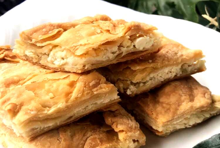 Τυροπιτά με τραγανό σπιτικό φύλλο & γέμιση φέτας & ανθότυρο. 💛