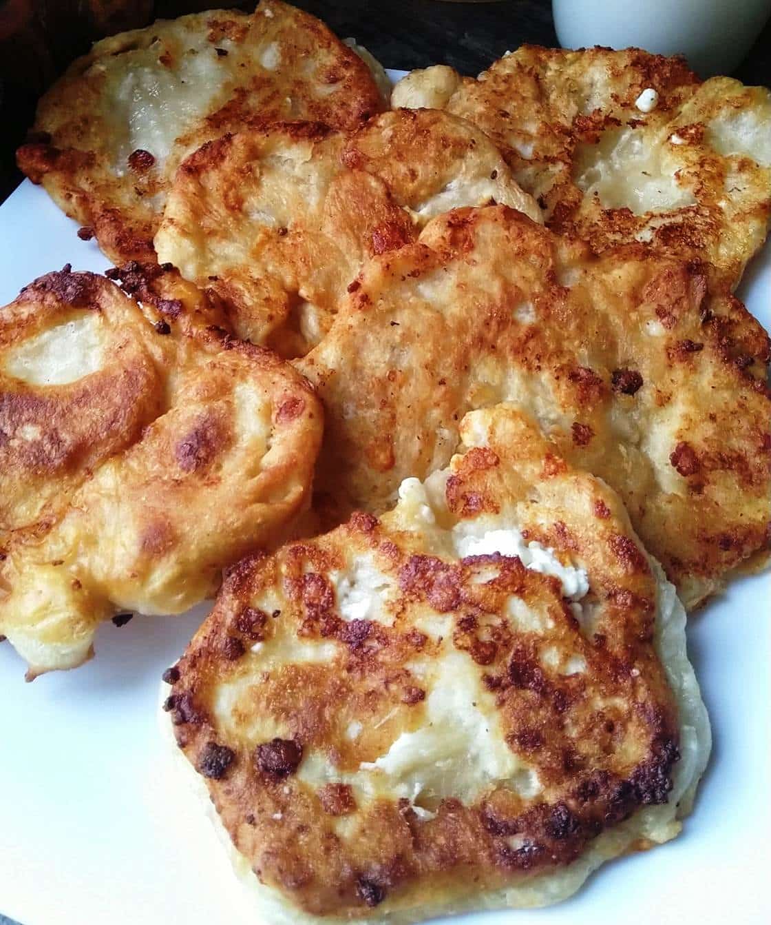 Παίρνουμε μικρά κομμάτια ζύμης και τα ανοίγουμε με τα χέρια ή με πλάστη σε μικρές, στρογγυλές πίτες, σαν μίνι τηγανίτες.