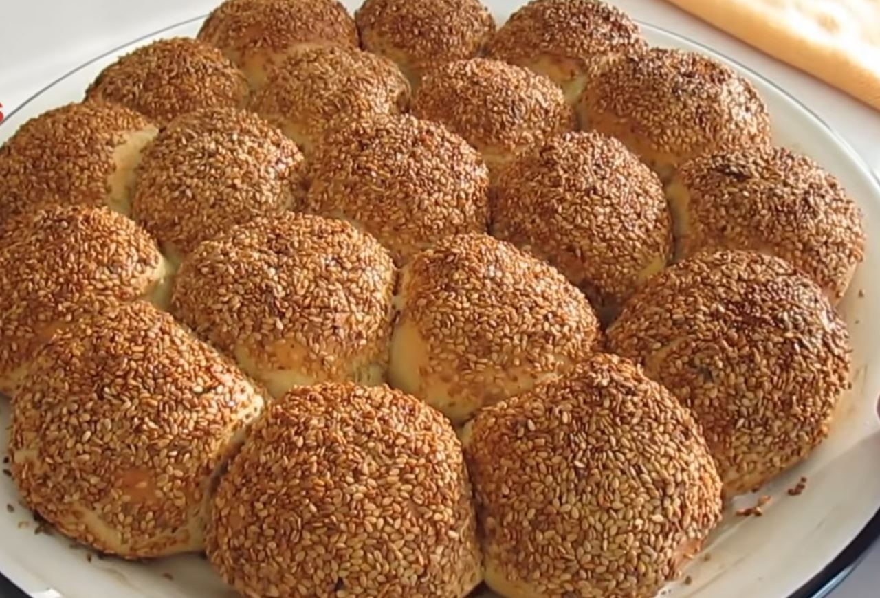 το βουτάμε μέσα σε ένα πιατο που έχουμε λιωμένο βουτυρο και μετα μέσα στο σουσάμι και τα βάζουμε στο ταψί μας κυκλικά.