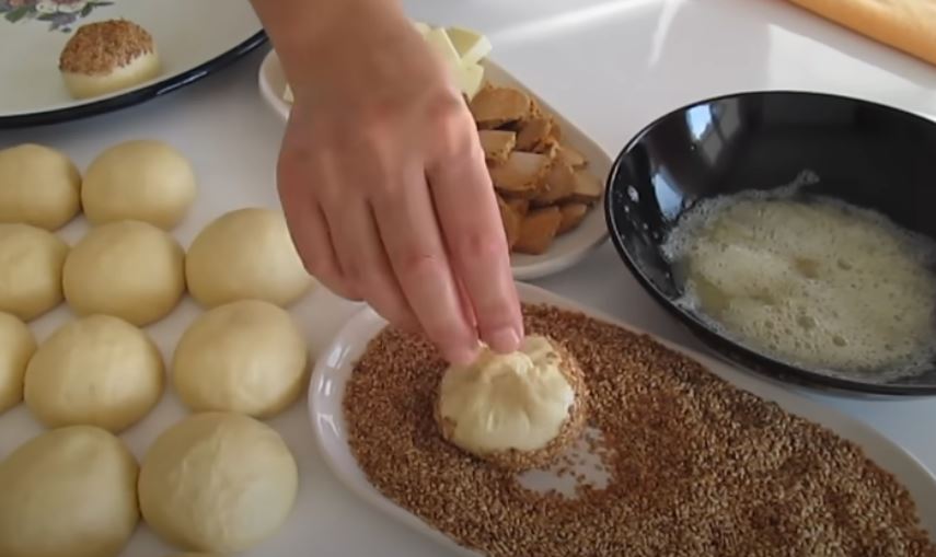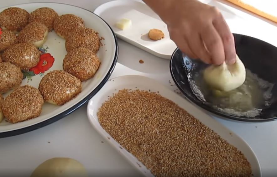 Παίρνουμε ένα ένα και πλάθουμε σε μπαλάκια και τα σκεπάζουμε.