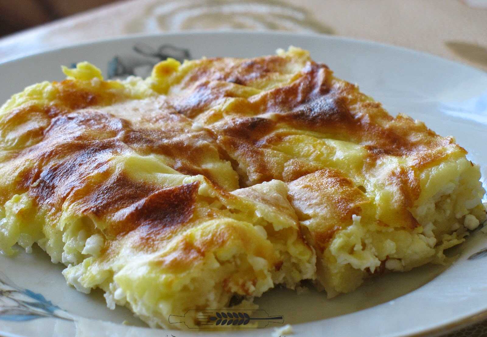 Τακτοποιήστε όλα τα φύλλα και απλώστε το μείγμα αυγών στο τελευταίο απο πανω και κόψτε σε τετράγωνα.