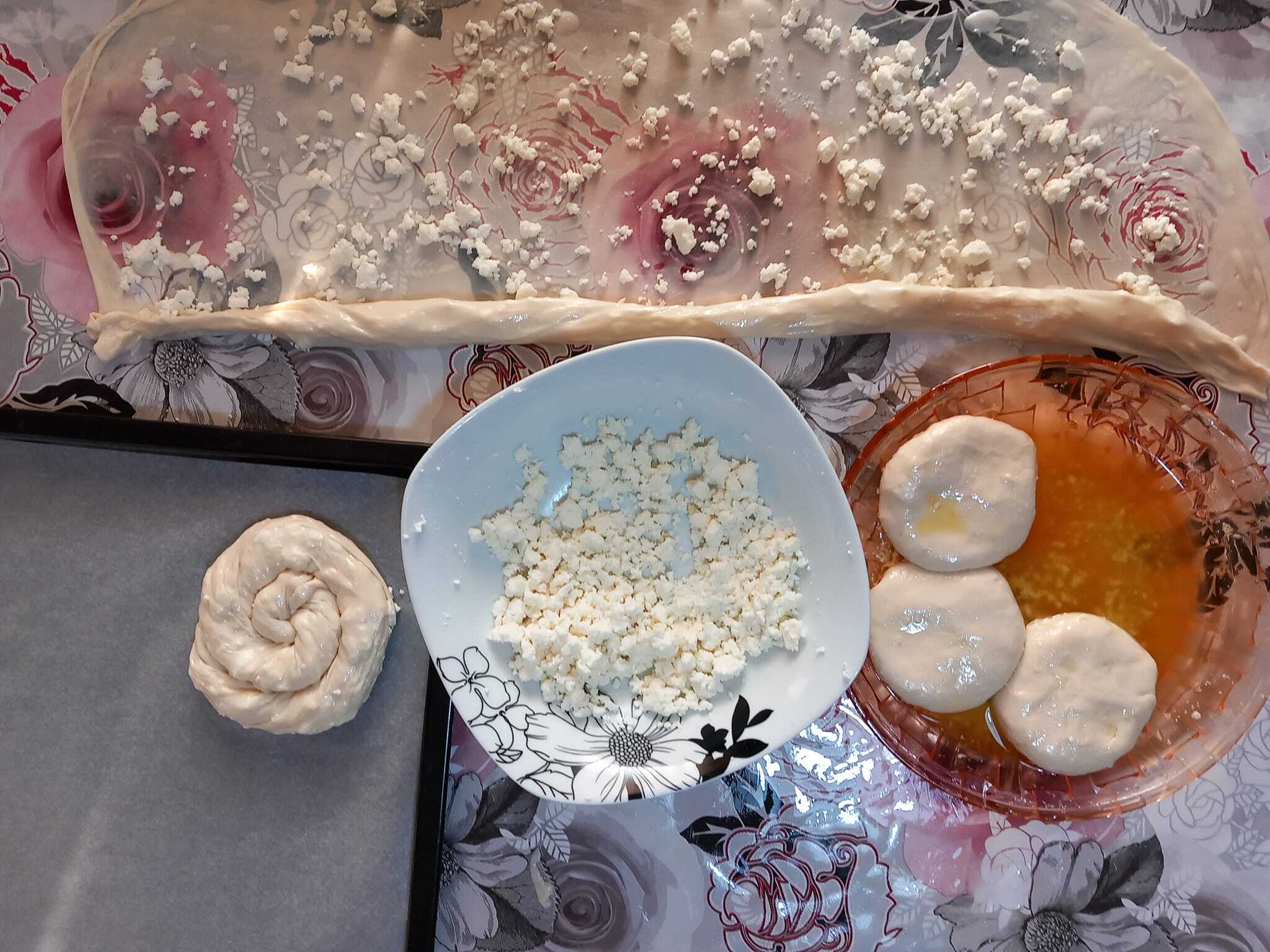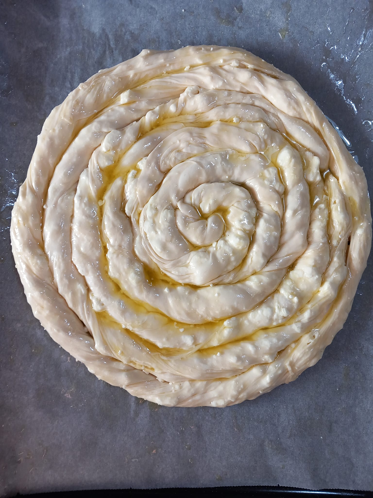 Φτιαχνουμε μίγμα βούτυρο αγελαδινό λιωμένο κρύο και λαδι για να βάλουμε τα μπαλακια της ζύμης για 20 λεπτά και για να ανοίξουμε τα φύλλα