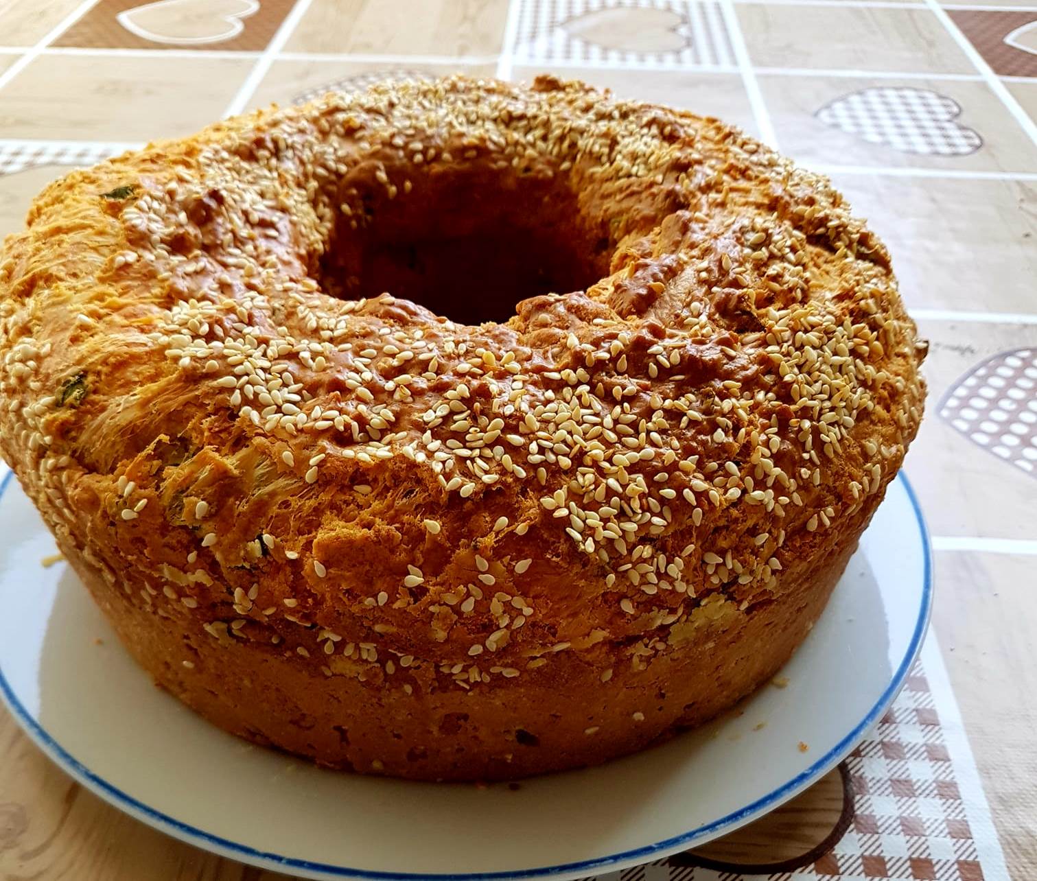Αδειάζουμε το μείγμα στη φόρμα και ψήνουμε για περίπου 45-50 λεπτά ή μέχρι η τυρόπιτα να ροδίσει και να είναι έτοιμη.