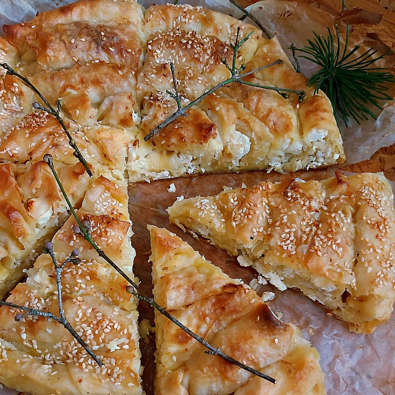 Μόλις ψηθεί η πίτα, τη βγάζετε από το φούρνο και την ψεκάζετε με κρύο νερό και στη συνέχεια τη σκεπάζετε με μια βαμβακερή