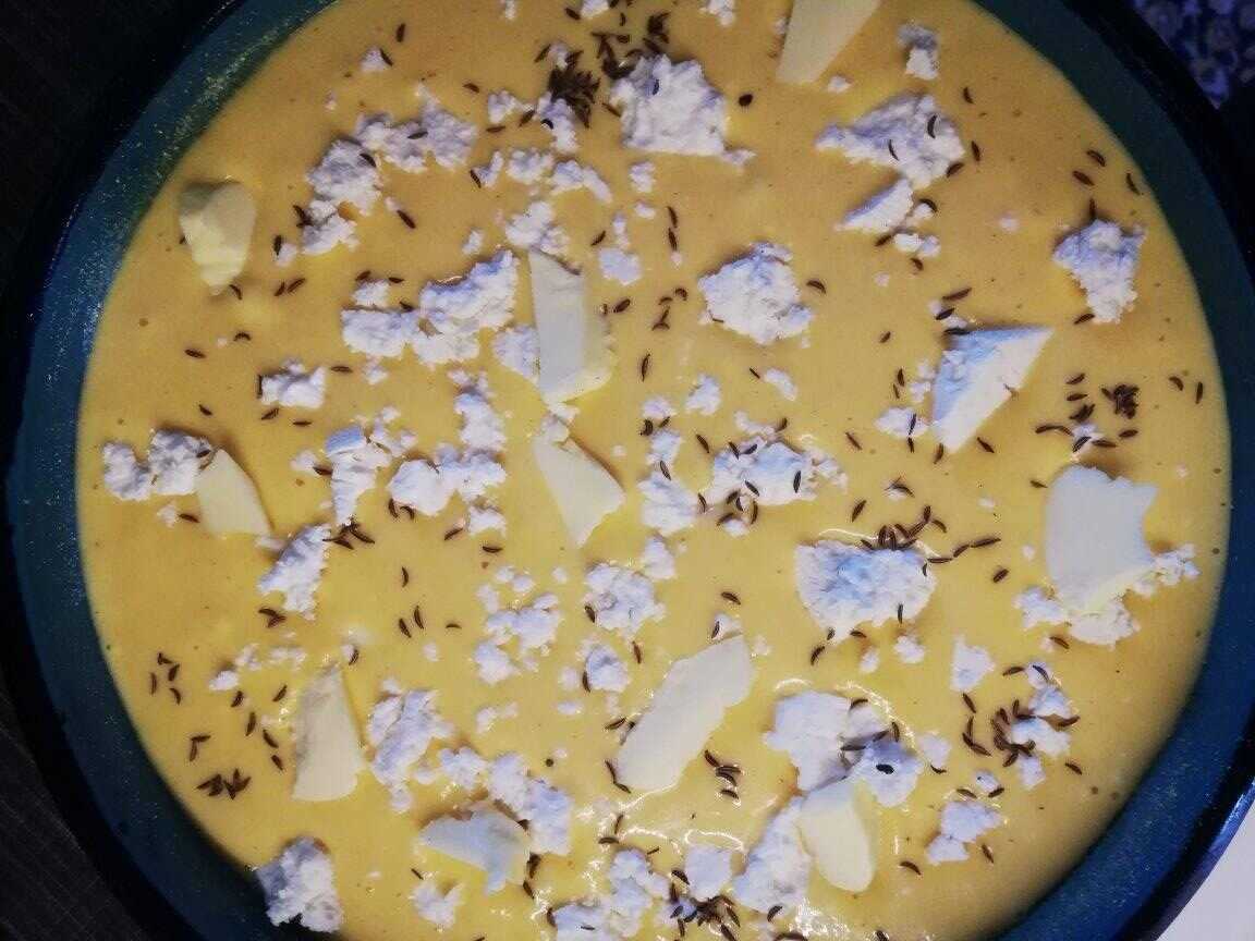 Προσθέτω λίγο ακόμα τυρί από πάνω και πασπαλίζω με λίγο κύμινο