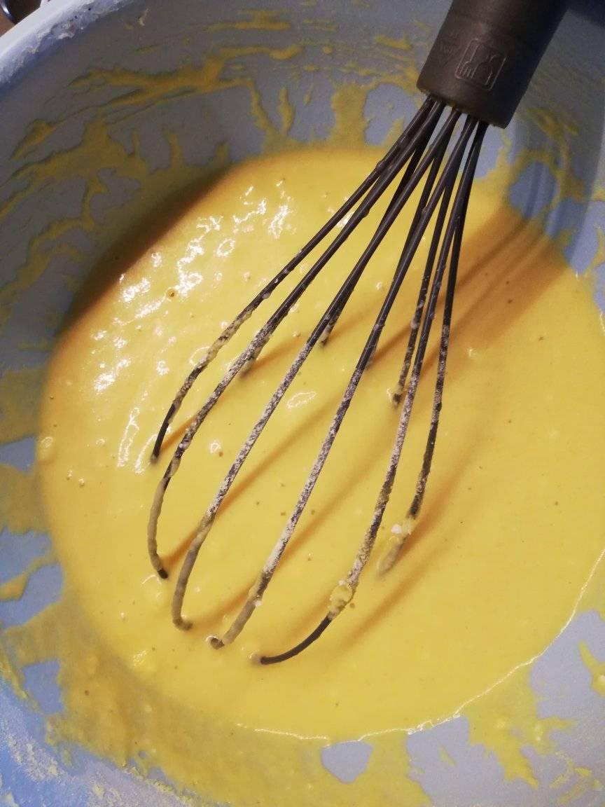 εξαρτάται από το πόσο έχω 😀, βάζω το λάδι και το καλαμποκάλευρο, πρέπει να είναι κουρκούτι για κέικ.