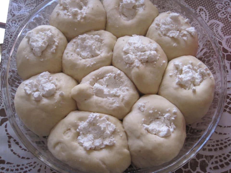 - Αφού φουσκώσει το ζυμάρι, το παίρνω και πλάθω μικρά μπαλάκια.