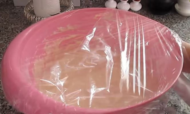 Την σκεπάζουμε μεμβράνη καλά και την αφήνουμε για 30 λεπτά.