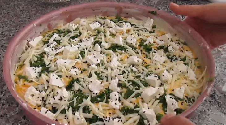 Προσθέτουμε κομμάτια φέτα και μαϊντανού και τυρί τριμμένο τσενταρ