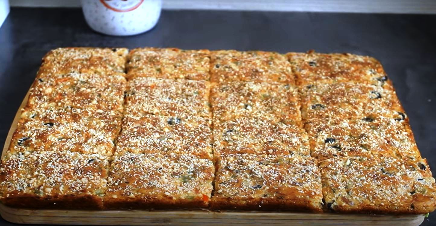 Αδειάζουμε το μείγμα σε ταψί 28Χ37 στο οποίο έχουμε στρώσει αντικολλητικό χαρτί.Απλώνουμε με το κουτάλι να πάει παντού.