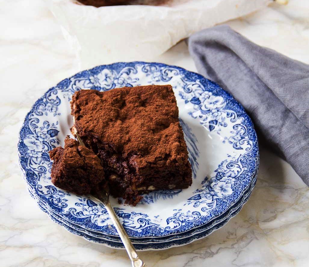 - Ρίχνουμε την υπόλοιπη σοκολάτα στην επιφάνεια και ψήνουμε στην δεύτερη σχάρα του φούρνου για 25 λεπτά περίπου.