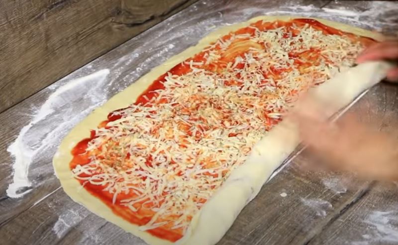 Τυλίξτε την ζύμη σε ένα μεγάλο ρολό.