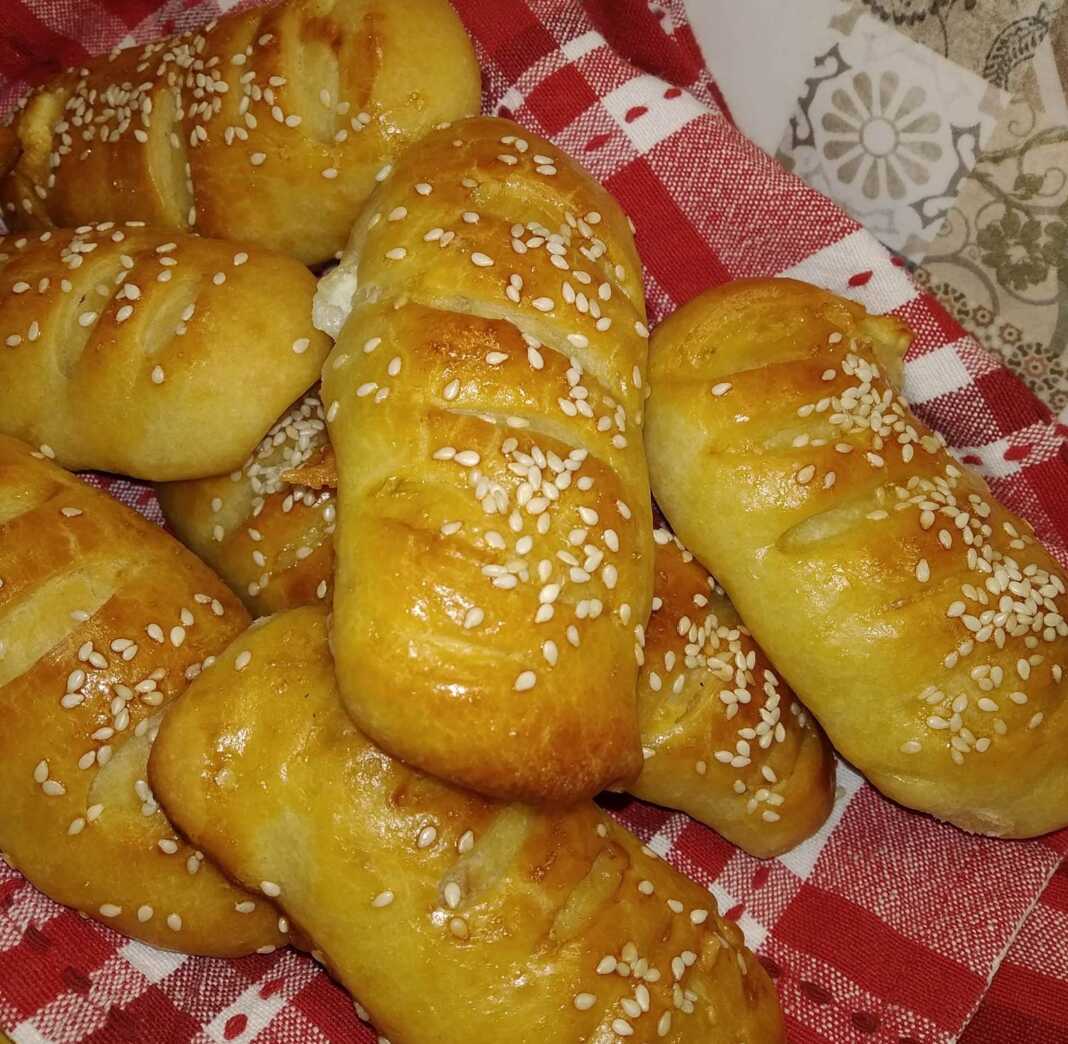 Αφήνουμε τα Τυροψωμάκια για άλλα 15 λεπτά σκεπασμένα, ώστε να φουσκώσουν ελαφρώς για δεύτερη φορά.