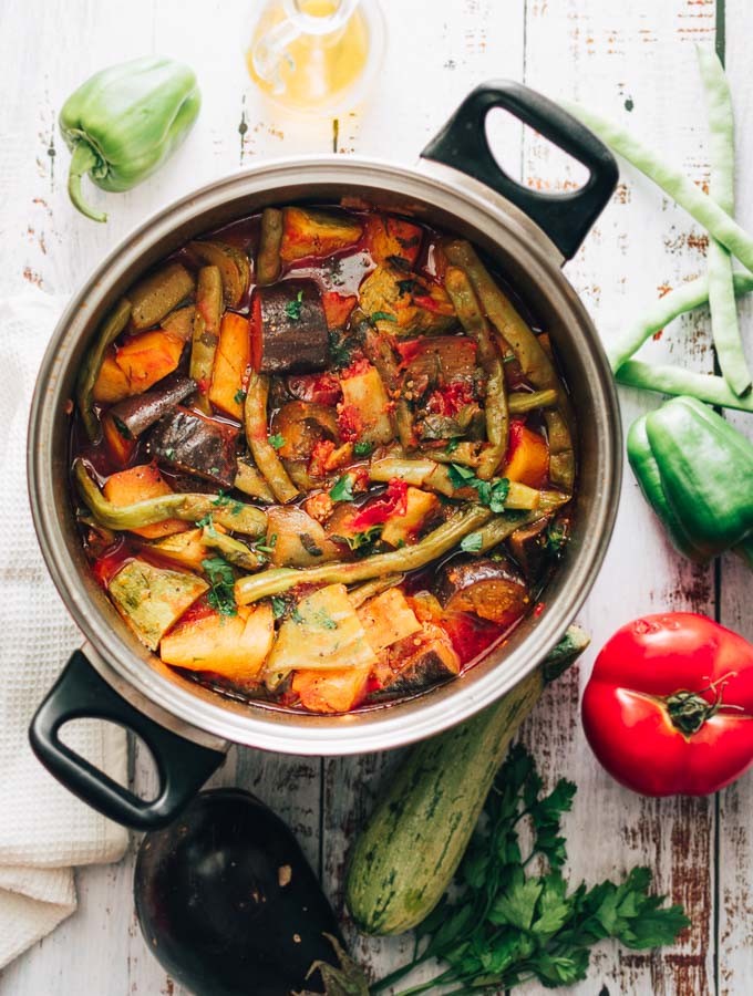 2 μεγάλες πατάτες αποφλοιωμένες και κομμένες σε μικρά κομμάτια (λίγο μικρότερα από τα λαχανικά)