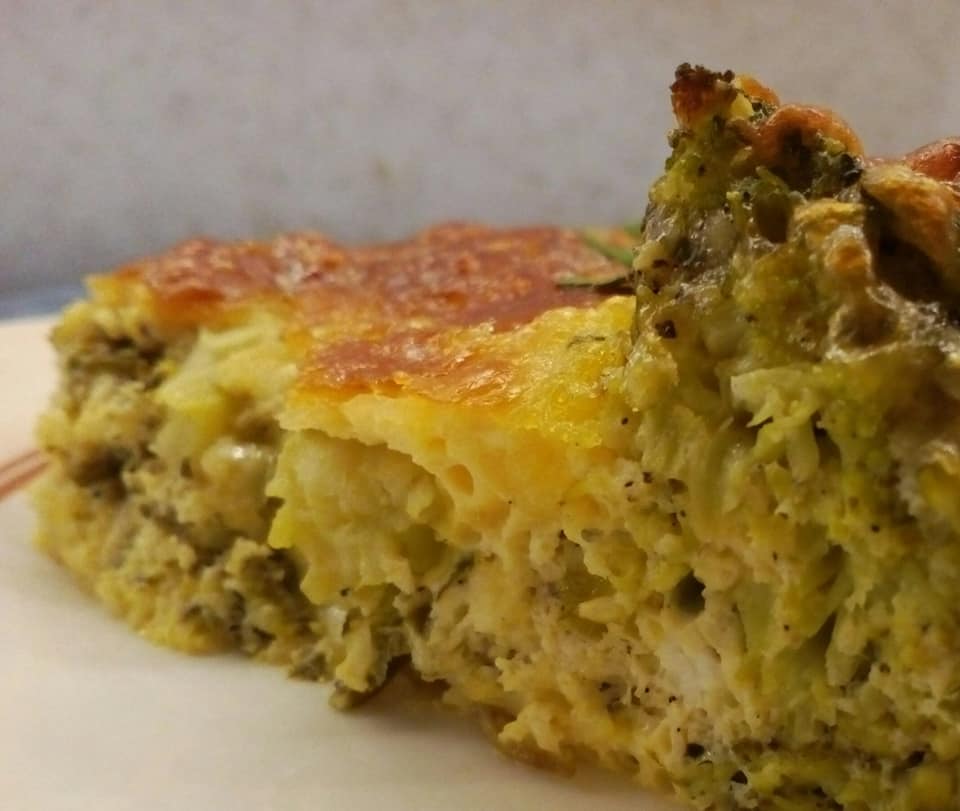 Χτυπάμε τα αυγά και προσθέτουμε το τυρί φέτα, τα μπαχαρικά και το μπρόκολο.