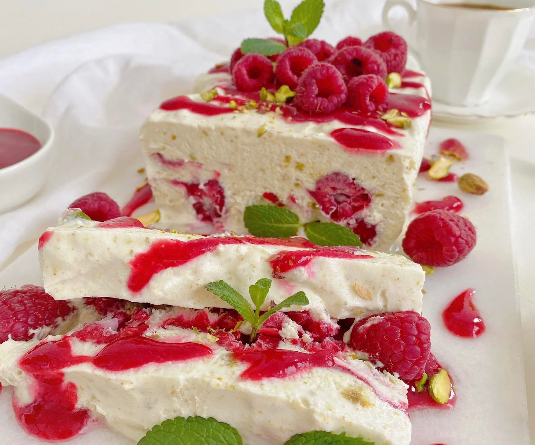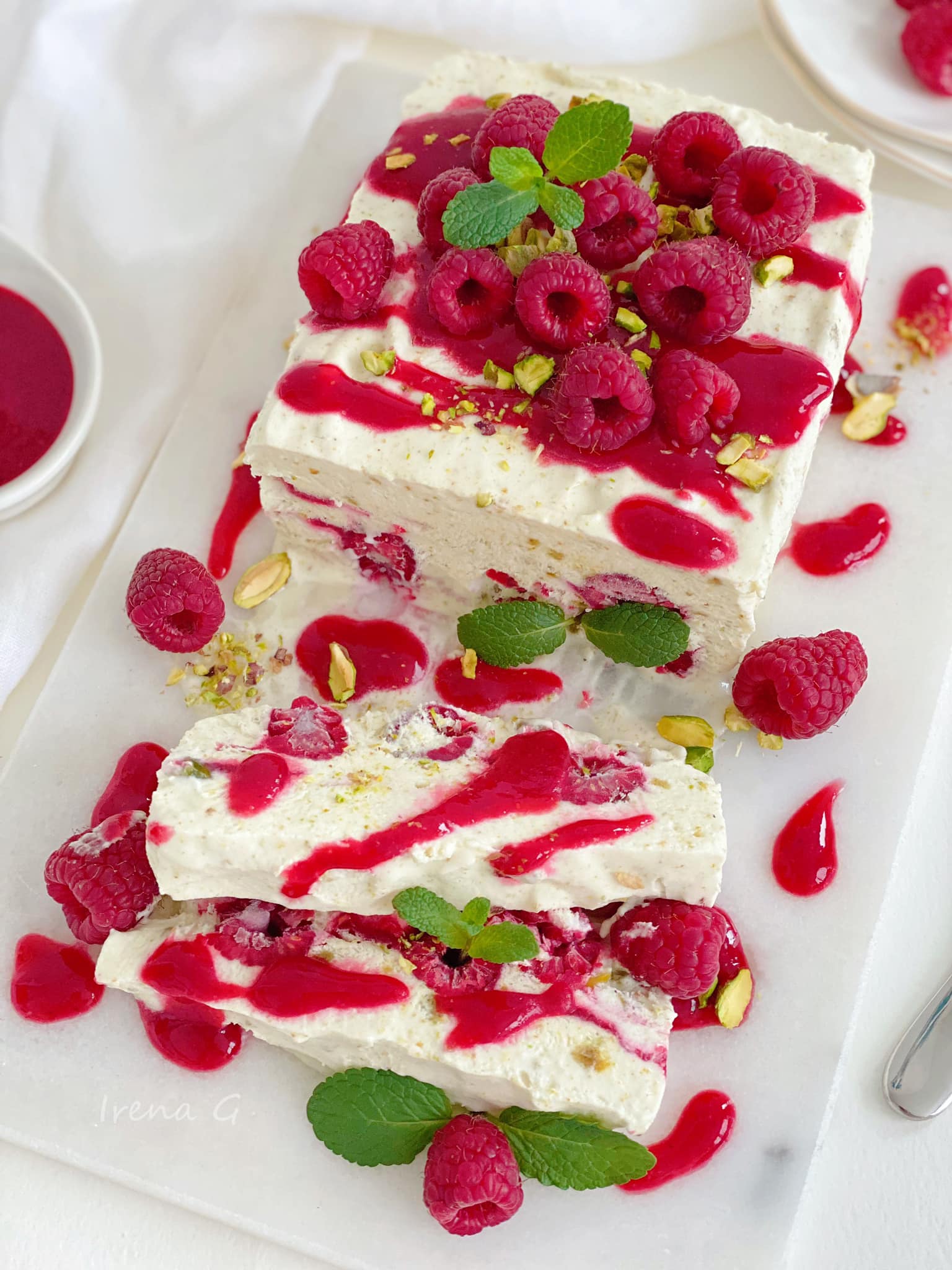 Γλυκό-παγωτό με βατομουρα και φιστίκι κελυφωτο