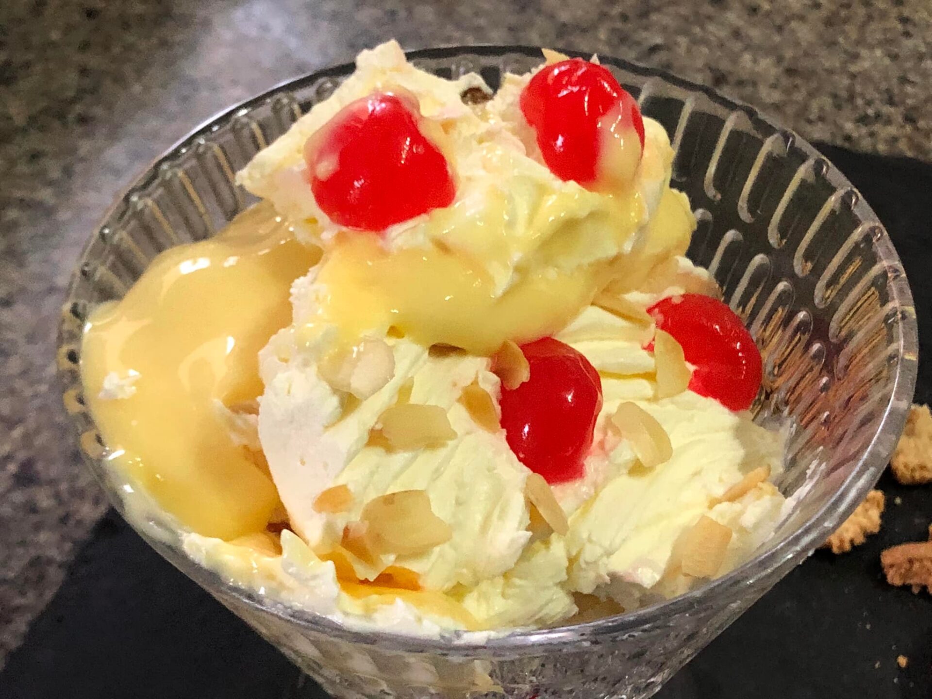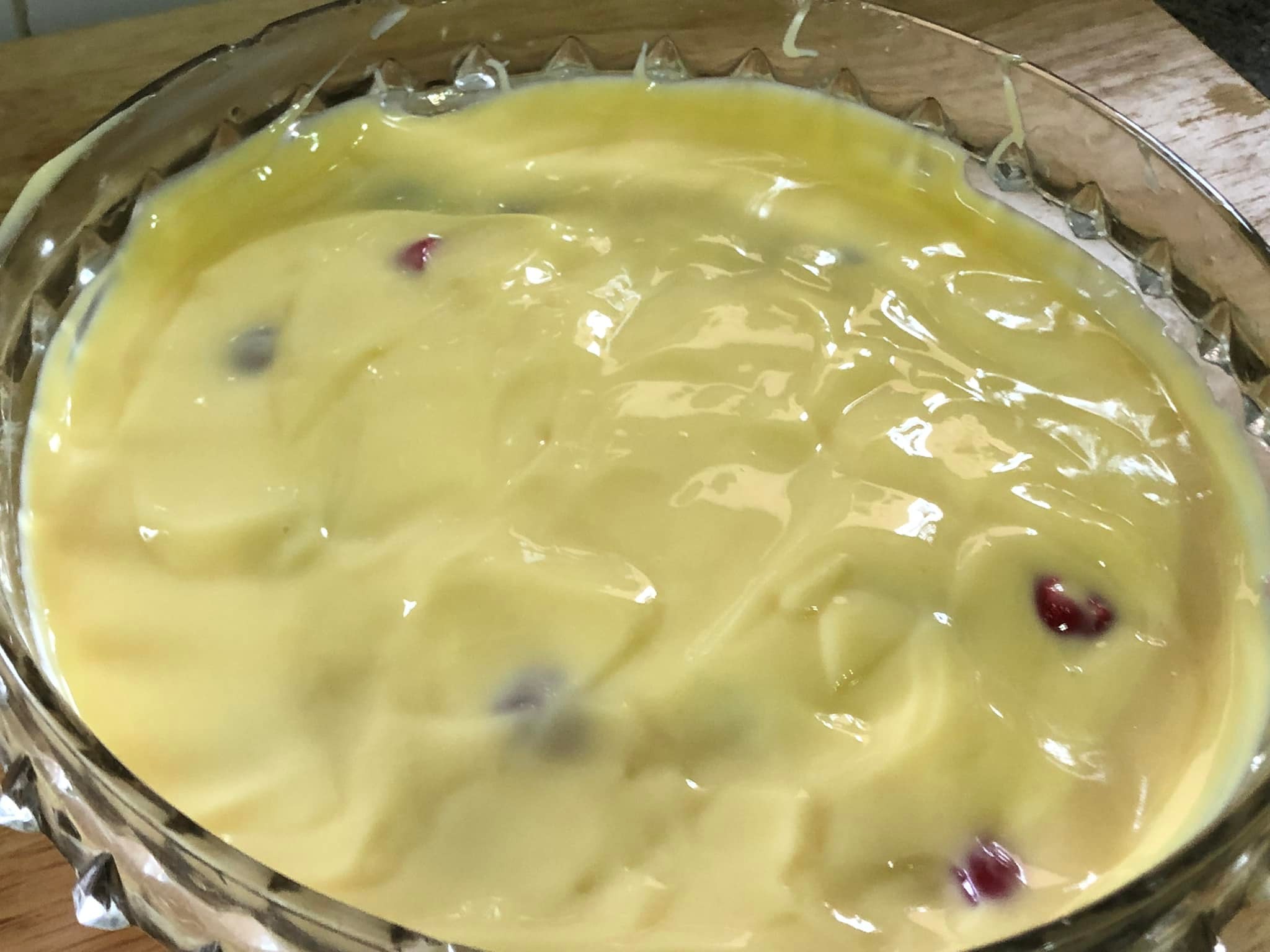 Πάρτε την παγωμένη κρέμα Anglaise και ρίξτε τη με ένα κουτάλι μέσα και γύρω από τα σαβαγιαρ στο μπολ…. Καταναλώστε την περίπου όλη και μετά ανακινήστε απαλά το μπολ για να ισοπεδωθεί η κρέμα