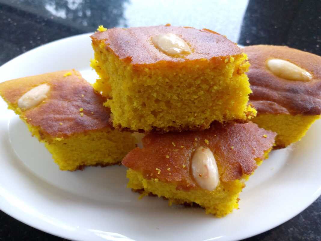 Σε ένα μεγάλο μπολ ανακατεύουμε το σιμιγδάλι, το αλάτι και τη ζάχαρη. Κοσκινίζουμε το αλεύρι, τον κουρκουμά και το