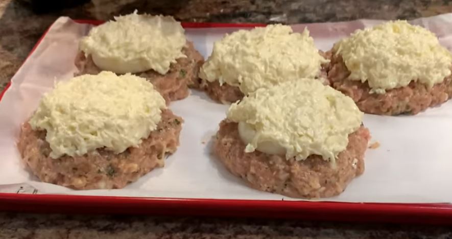 6. Πάρτε την τριμμένη μοτσαρέλα με την μαγιονέζα και χωρίστε σε μερίδες όσα είναι και τα μπιφτέκια.