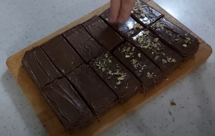 Κόβουμε σε κομμάτια πασπαλίζουμε με καρύδι και το γλυκό μας είναι έτοιμο