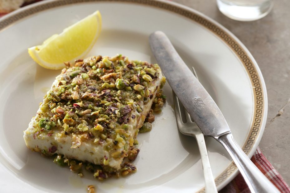 Ζεσταίνουμε το ελαιόλαδο και το βούτυρο σε ένα μεγάλο, αντικολυτικό τηγάνι. Σοτάρετε τα κομμάτια φέτας μία ή δύο κάθε φορά σε μέτρια φωτιά, έως ότου το φιστίκι να αρχίσει να γίνετε καφέ ελαφριά. Γυρίστε προσεκτικά με μια σπάτουλα για να σοτάρετε στην άλλη πλευρά. Βγάλτε από το τηγάνι και σερβίρετε ζεστό.