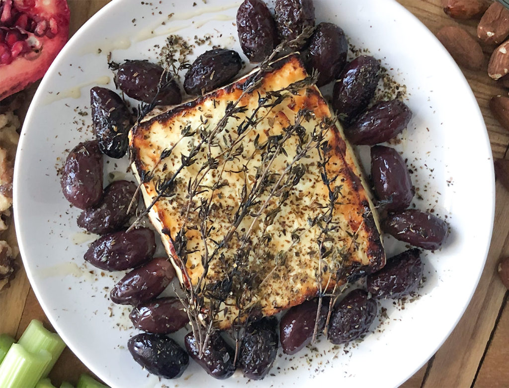 Προσθέστε τις ελιές γύρω από τη φέτα.