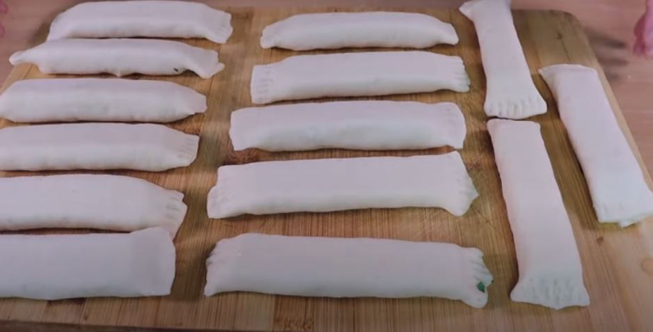 Τυλίγουμε κάθα τυράκι με την ζύμη και σφραγίζουμε τα τυράκια μέσα στην ζύμη και τις άκρες πατώντας με ενα πηρουνι.