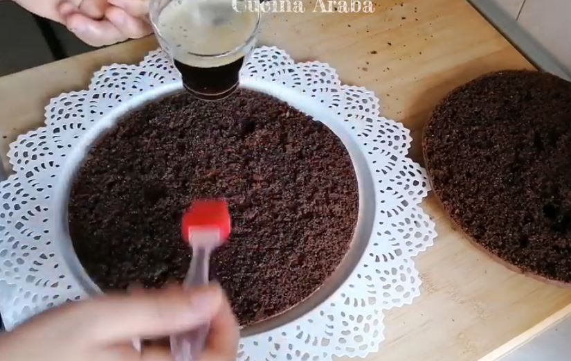 Βάζω το ένα μέρος σε έναν δίσκο και το ραντίζω με τον μισό καφέ.