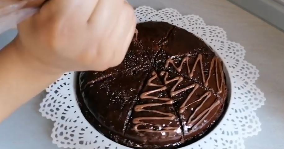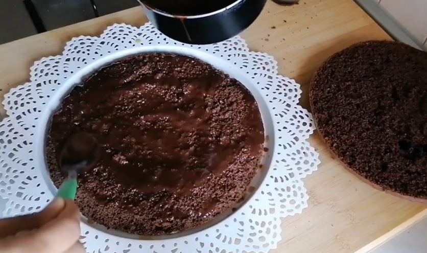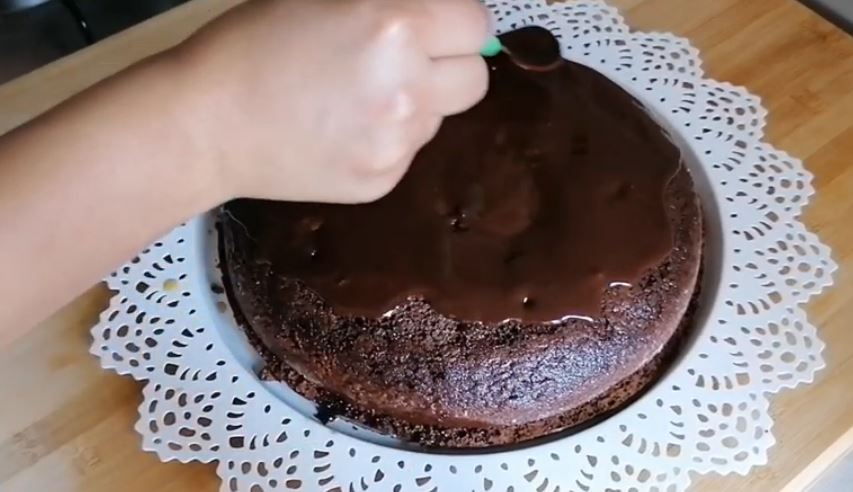 Μην παραλείψετε να κάνετε τρύπες στη βάση του κέικ, καθώς έτσι θα απορροφήσει καλύτερα τη Nutella ganache.