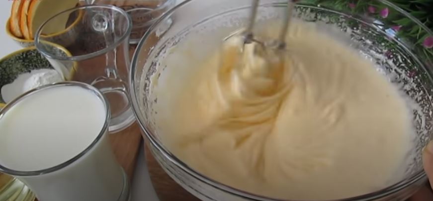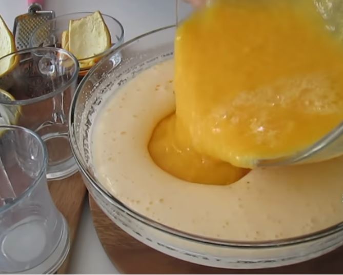 Προσθέτουμε το λάδι, το γάλα, το ξύσμα και τέλος το μείγμα των πορτοκαλιών.