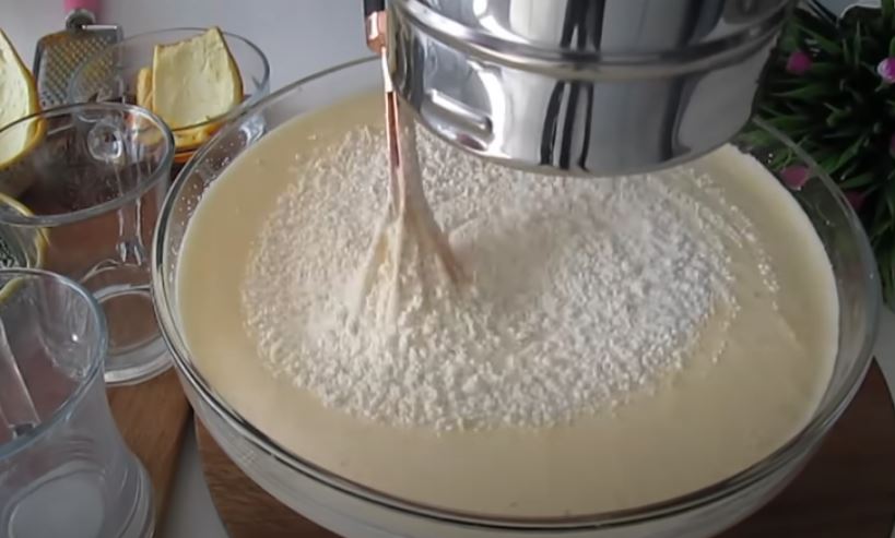 Στη συνέχεια προσθέτουμε λίγο λίγο το αλεύρι και το μπέικιν κοσκινισμένα ενώ ταυτόχρονα ανακατεύουμε.