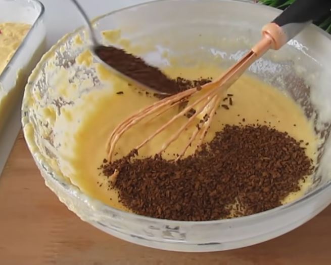Ρίχνουμε στο μείγμα που κρατήσαμε τις κουταλιές του καφέ και ανακατεύουμε καλά να λιώσει.