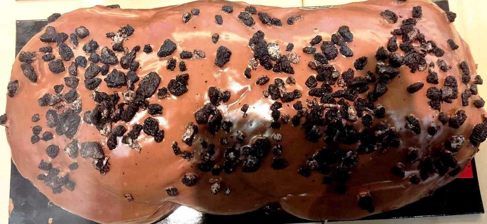 Στο διάστημα αυτό φτιάχνουμε το γλάσο μας. Τοποθετούμε το τσουρέκι σε μία σχάρα, και περιχύνουμε με το ζεστό (όχι καυτό) γλάσο. Αφήνουμε να στραγγίξει, και πασπαλίζουμε με τριμμένο μπισκότο OREO. Το αφήνουμε να σφίξει καλά η κουβερτούρα σε δροσερό μέρος. Αν δεν χρησιμοποιήσουμε μπισκότο, αφού έχει σφίξει καλά το γλάσο, παίρνουμε την λιωμένη λευκή κουβερτούρα, και σχηματίζουμε λεπτές γραμμές πάνω στο τσουρέκι μας για φινίρισμα.