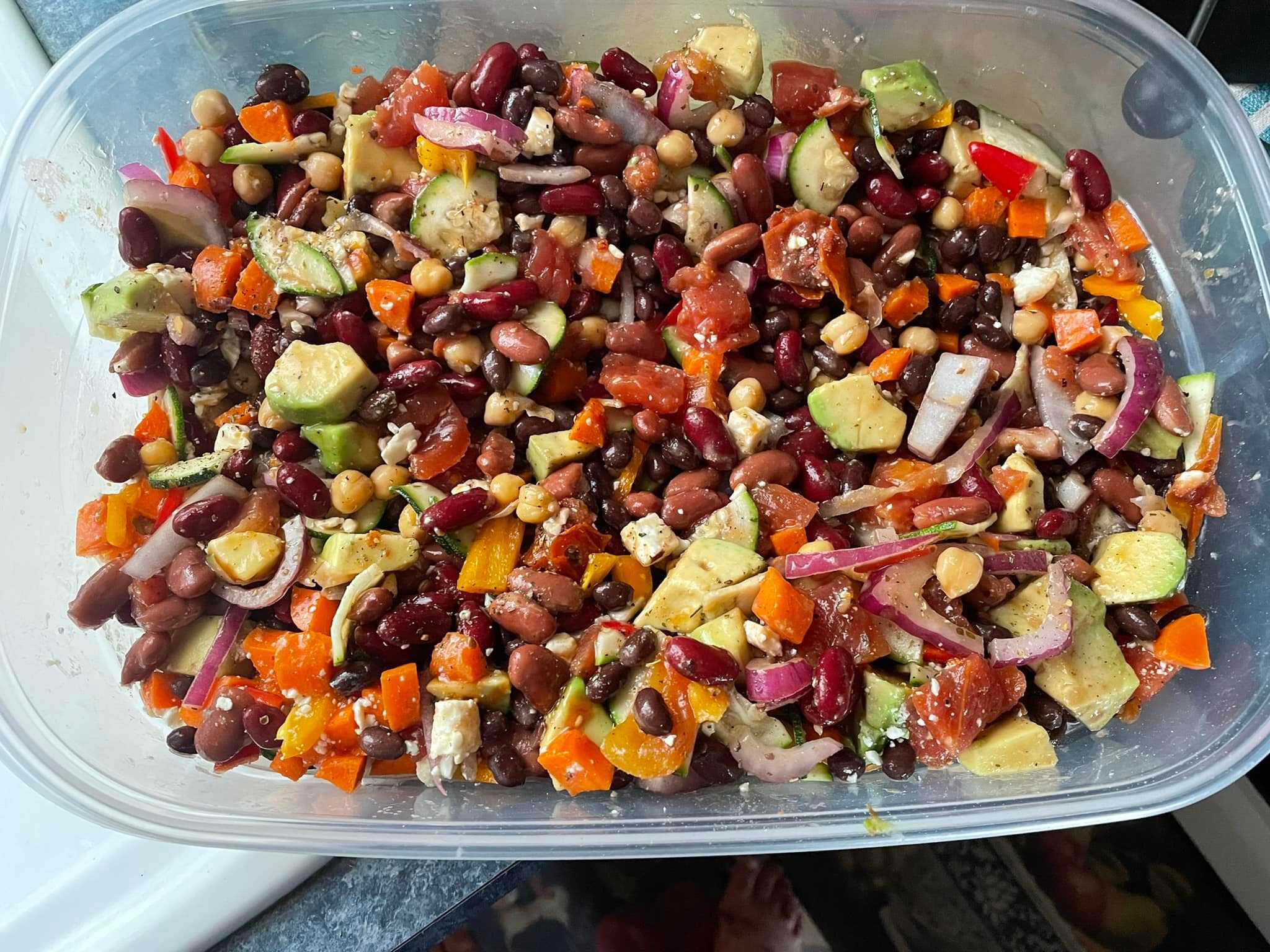 Φασόλια με κόκκινα κρεμμύδια —αβοκάντο—πιπεριές-κολοκυθάκια-καρότα-τυρί φέτα σε βινεγκρέτ λεμονιού