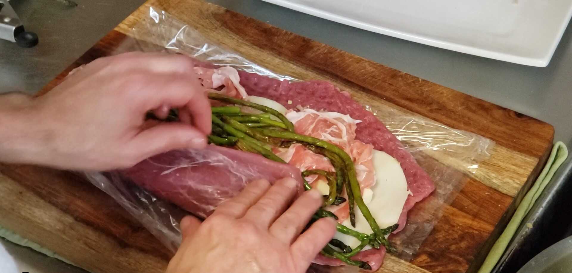 Ενώ το σπαράγγι μαγειρεύετε μπορείτε να χτυπήσετε ομοιόμορφα το χοιρινό φιλέτο με κατι βαρύ