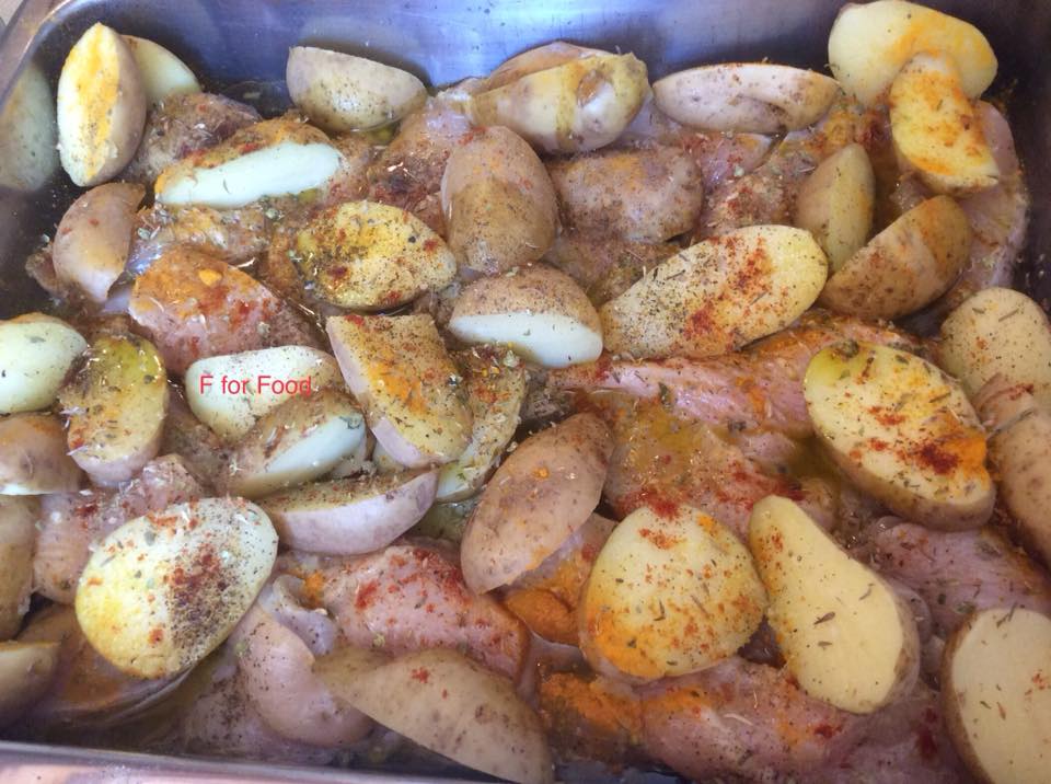 Προσθέτω τις πατάτες,και ψήνω στους 220,αντιστάσεις για περίπου τρία τέταρτα.